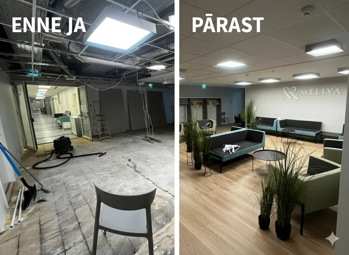 Kasutame kaasaegset tolmuvaba lihvimistehnikat, mis hoiab 90% tolmust eemal. Lisaks katame alati kõik pinnad ja mööbli hoolikalt kinni ja koristame objekti tööpäeva lõpus.